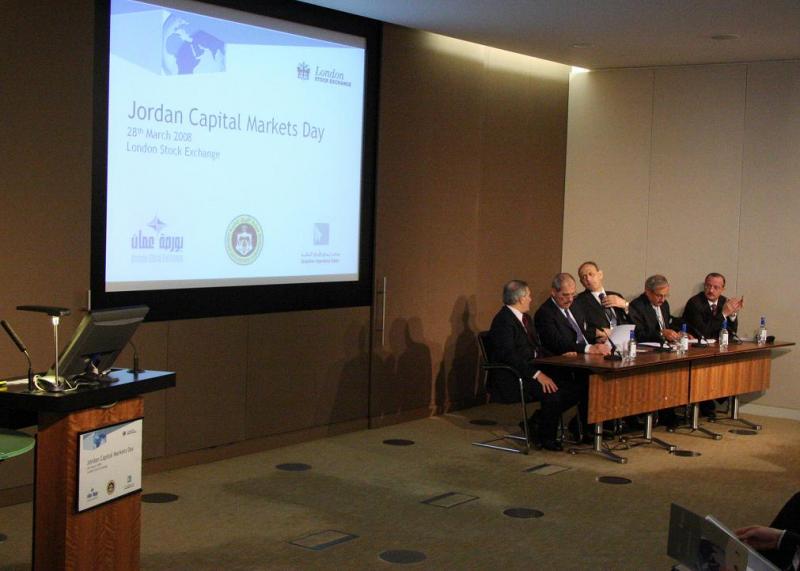 تحت رعاية هيئة الأوراق المالية عقدت بورصة عمان وبالتعاون مع بورصة لندن وبنك نيويورك وبمشاركة مركز إيداع الأوراق المالية وللسنة الثانية على التوالي ندوة استثمار خاصة بسوق رأس المـال الأردني في مبنى بورصة لندن خلال الفترة 27-28 آذار 2008، لغاية استمرارية تحقيق التواصل مع الأسواق المالية العالمية والمستثمرين الدوليين وبمشاركة شركات أردنية تمثل مؤسسات مالية وصناعية كبرى . وقد حضر اللقاء حوالي 80 مدير استثمار يمثلون أكبر الشركات والصناديق الاستثمارية الموجودة في بريطانيا وتستثمر في الشرق الأوسط وشمال أفريقيا.