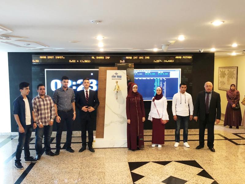 استضافت شركة بورصة عمان في الإحتفالية الدورية لقرع جرس بدء جلسة التداول ليوم الأحد الموافق 9/9/ 2018 أوائل الثانویة العامة في المملكة للدورة الصيفية للعام 2018 من جمیع الفروع حيث قرع الطلاب جرس بدء جلسة التداول اليومي وذلك تكريماً لهم على جھودھم الدؤوبة التي أدت إلى تفوقهم وحصولهم على أعلى الدرجات وذلك بحضور المدير التنفيذي والإدارة التنفيذية لها.
