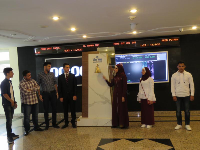 The Amman Stock Exchange Company (ASE) hosted the top ranking students in the Secondary Education for the summer session of this year in the periodic celebration of ring the bell of the daily trading session on Sunday, 9/9/2018 from all the branches where the students rang the bell of the daily trading session to honor them for their tireless efforts, which led to their superiority over and obtaining the highest grades, this was in the presence of the Chief Executive Officer (CEO) and the Executive Management of the ASE.