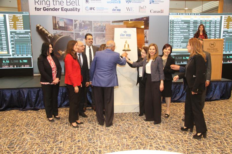 On March12, 2018 Amman Stock Exchange(ASE), hosted the fourth Annual Celebration of the Gender Equality Initiative in Jordan "2018 Ringing Bell for Gender Equality Initiative" which was organized by the ASE in cooperation with the International Finance Corporation (IFC), throughout ringing the bell for starting the trading session at the ASE coincide with the celebration of Women's International Day in the presence of H.E. Dr. Jawad Al-Anani ASE chairman of the board, the CEO of the ASE Mr. Nader Azar, Ms. Dalia Wahba, IFC Country Manager - World Bank Group, Mr. Ziad Sheikh, UN Women Representative to Jordan and a number of Business Women and the public figures interested in SSE Principles and Gender equality , and representatives of brokerage firms , Public Shareholding Companies and capital market institutions.